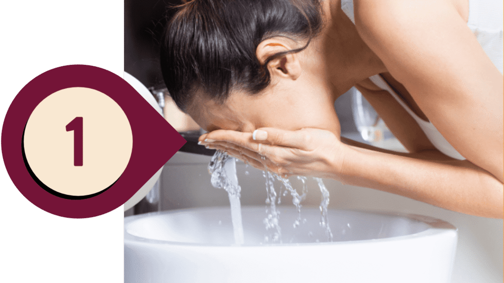 Limpe a Pele: Lave o rosto e o pescoço com um sabonete facial adequado e seque suavemente.