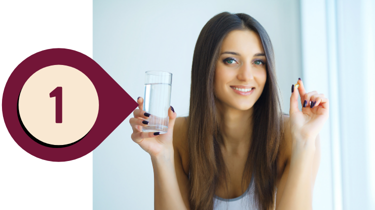 Passo 1: Recomendamos 2 cápsulas ao dia, copo com água ou bebida da sua preferência